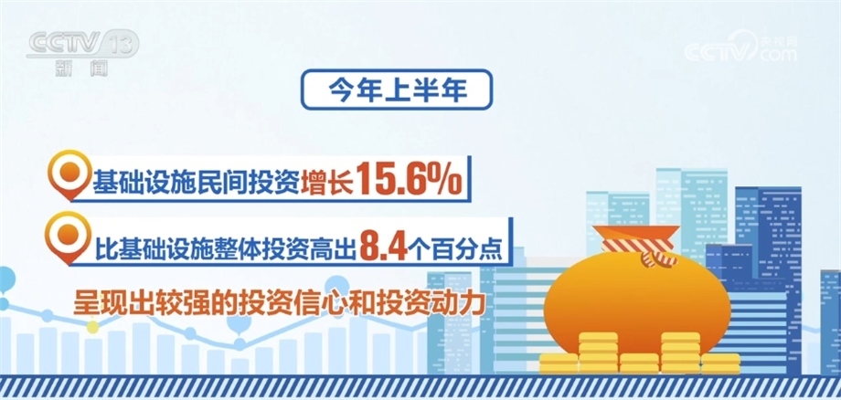 國家發(fā)展改革委相關負責人表示,當前,民間投資結構持續(xù)優(yōu)化,一些領域民間投資顯現(xiàn)了不少亮點。今年上半年,除房地產(chǎn)開發(fā)以外的民間投資同比增長9.4%,增速比全部投資高5.6個百分點;制造業(yè)民間投資增長8.4%,比制造業(yè)整體投資高出2.4個百分點,特別是清潔能源、電動汽車等領域民間投資比較活躍;基礎設施民間投資增長15.6%,比基礎設施整體投資高出8.4個百分點,呈現(xiàn)出較強的投資信心和投資動力。