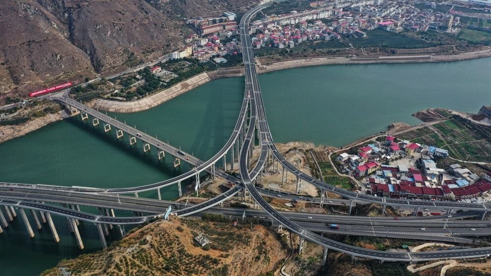2022年12月30日,俯瞰峨眉至漢源高速公路流沙河樞紐互通(無人機(jī)照片)。新華社發(fā)(冉闖 攝)