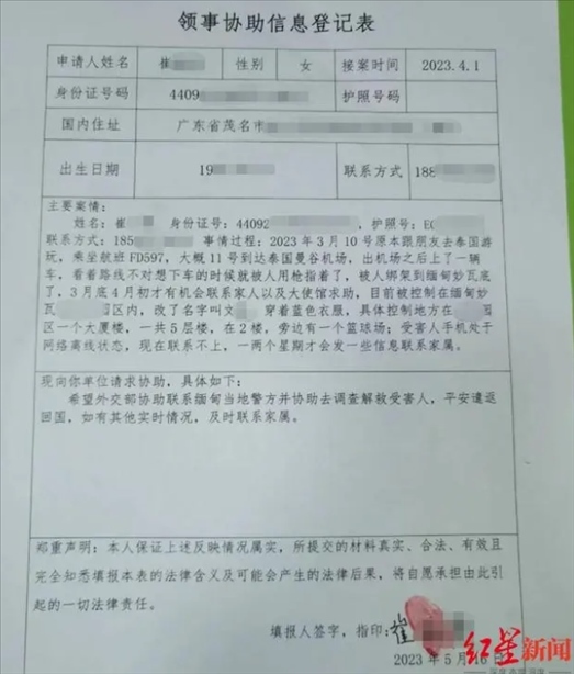 ·被順利解救!家屬稱出游泰國(guó)被劫至緬甸的廣東兩男子27日平安回家。