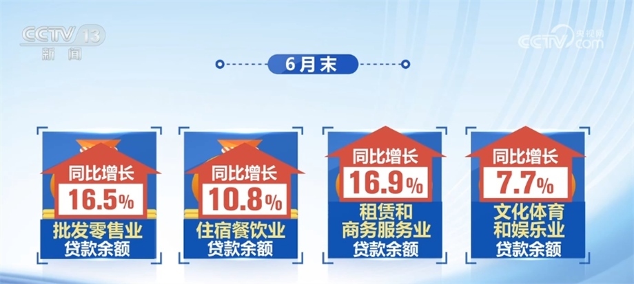 數(shù)據(jù)顯示,6月末,批發(fā)零售業(yè)、住宿餐飲業(yè)、租賃和商務(wù)服務(wù)業(yè)、文化體育和娛樂業(yè)貸款余額同比分別增長16.5%、10.8%、16.9%、7.7%,信用卡、汽車和其他綜合消費貸款比年初增加7100多億元,有力支持了相關(guān)領(lǐng)域消費恢復(fù)發(fā)展。