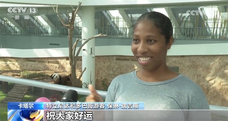 在卡塔爾的大熊貓館,很多前來(lái)參觀的游客得知大運(yùn)會(huì)吉祥物“蓉寶”的原型也是一只熊貓,他們紛紛預(yù)祝大運(yùn)會(huì)圓滿成功,祝福運(yùn)動(dòng)員們享受比賽,取得好成績(jī)。