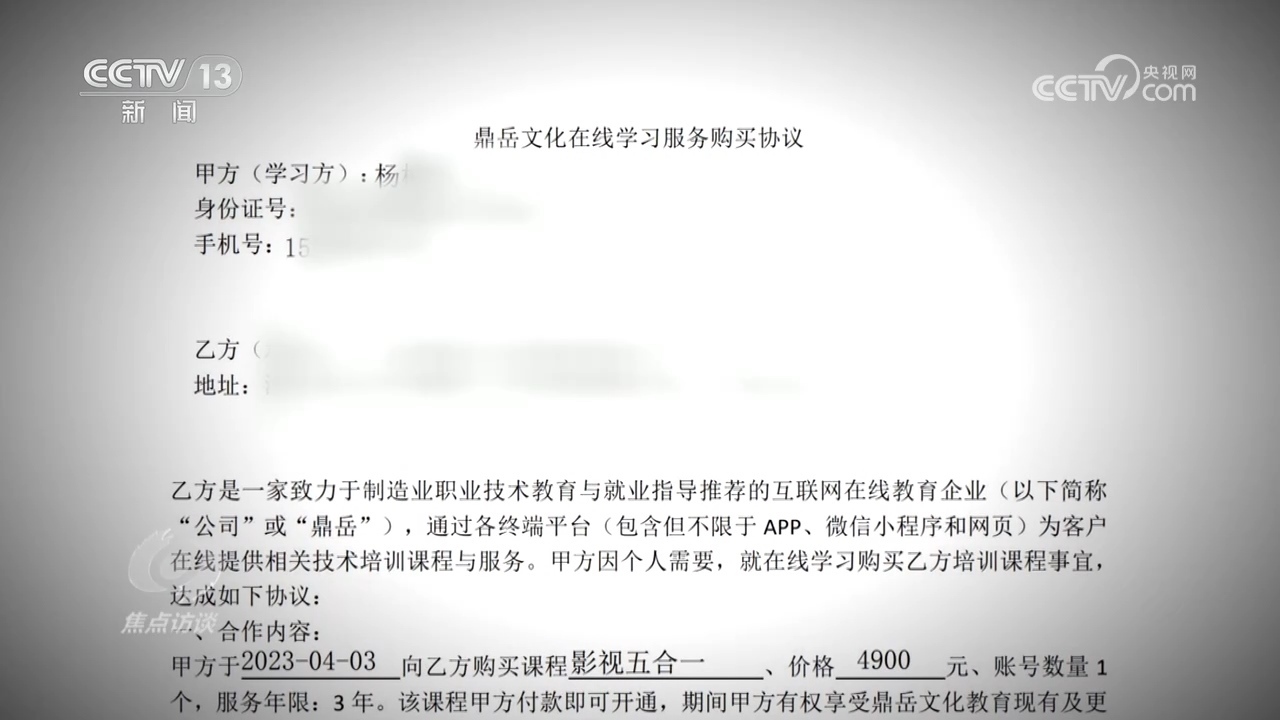 然而,這次鼎岳公司的工作人員也沒再用推薦兼職來安撫他,而是直接拿出了培訓合同,上面寫著“自用戶繳費兩個月后,鼎岳將不再為用戶提供退費服務。”看著這份自己簽了字的培訓合同,小楊意識到退費難了。
