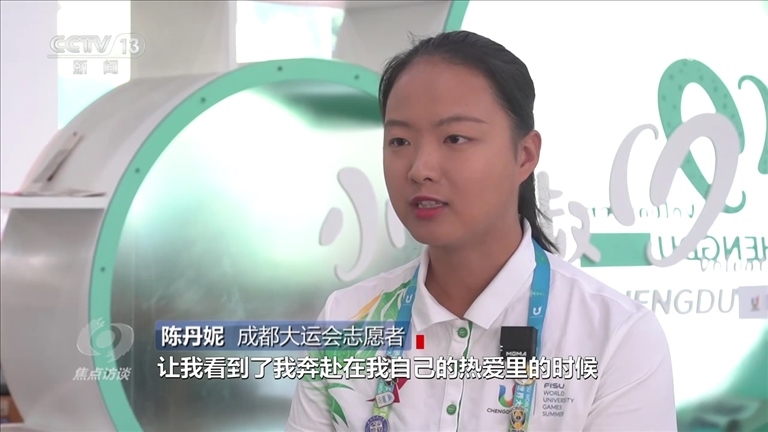 成都大運(yùn)會志愿者陳丹妮:“我一定要回來,一定要把這件事情做完,而且把這件事情做好。我覺得成都大運(yùn)會是我跟成都很深的情感上,包括精神上的一個(gè)聯(lián)結(jié),它已經(jīng)成為我青春記憶中非常重要的一個(gè)環(huán)節(jié),所以我完全沒有想過我有一天要放棄它?!?/p>