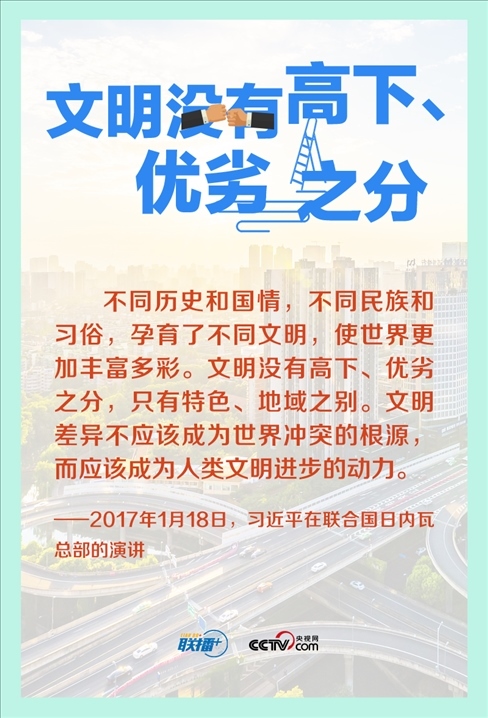 人類文明多樣性賦予這個世界姹紫嫣紅的色彩,多樣帶來交流,交流孕育融合,融合產(chǎn)生進(jìn)步。長期以來,習(xí)近平主席在不同場合多次倡導(dǎo)尊重世界文明多樣性,推動不同文明交流對話、和平共處、和諧共生。讓我們一起來學(xué)習(xí)。