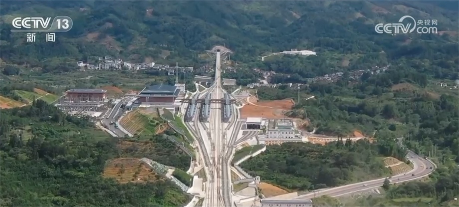 總臺記者 茍順庭:在我身后就是全長12.7公里的貴南高鐵朝陽隧道。因?yàn)樗淼浪诘纳襟w存在有大量的巖溶地質(zhì)點(diǎn),地下暗河、溶洞溶腔交錯(cuò)縱橫、環(huán)境復(fù)雜,所以這個(gè)朝陽隧道是整條線路上風(fēng)險(xiǎn)系數(shù)最高的控制性工程。穿過朝陽隧道后,就到了貴南高鐵貴州段的最后一站——荔波站。