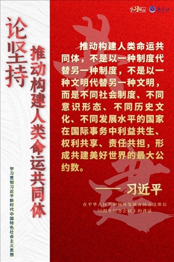 習(xí)近平總書(shū)記強(qiáng)調(diào),我們要與世界各國(guó)人民同心協(xié)力,構(gòu)建人類命運(yùn)共同體,建設(shè)持久和平、普遍安全、共同繁榮、開(kāi)放包容、清潔美麗的世界。