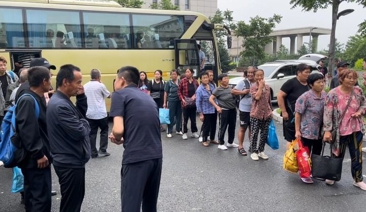 “不著急,慢點(diǎn)兒下,咱這兒有住的、有吃的?!眮?lái)自五常市民樂(lè)鄉(xiāng)的群眾陸續(xù)走下大巴車,已有工作人員等在車前。