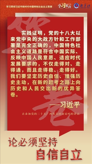 中國人民和中華民族從近代以后的深重苦難走向偉大復(fù)興的光明前景,從來就沒有教科書,更沒有現(xiàn)成答案。黨的百年奮斗成功道路是黨領(lǐng)導(dǎo)人民獨(dú)立自主探索開辟出來的,馬克思主義的中國篇章是中國共產(chǎn)黨人依靠自身力量實踐出來的,貫穿其中的一個基本點(diǎn)就是中國的問題必須從中國基本國情出發(fā),由中國人自己來解答。我們要堅持對馬克思主義的堅定信仰、對中國特色社會主義的堅定信念,堅定道路自信、理論自信、制度自信、文化自信,以更加積極的歷史擔(dān)當(dāng)和創(chuàng)造精神為發(fā)展馬克思主義作出新的貢獻(xiàn),既不能刻舟求劍、封閉僵化,也不能照抄照搬、食洋不化。