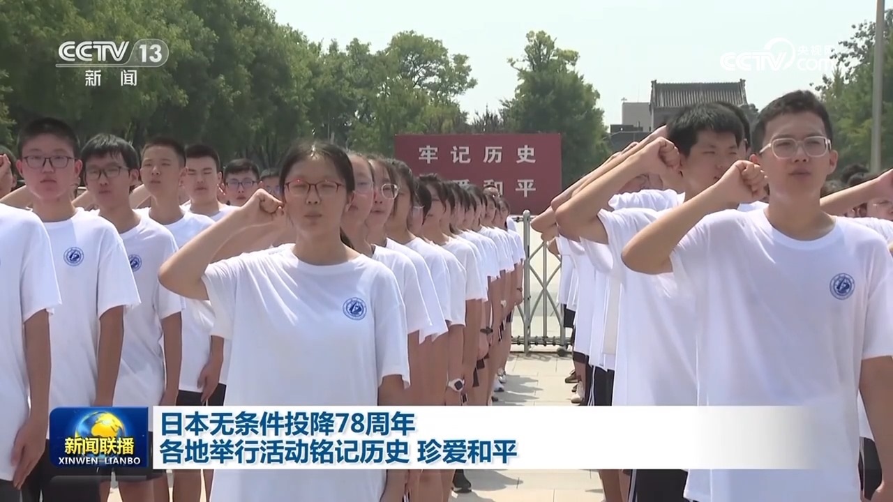 央視網(wǎng)消息(新聞聯(lián)播):今天(8月15日)是日本宣布無條件投降78周年的日子,各地舉行形式多樣的活動緬懷先烈、銘記歷史、珍愛和平。