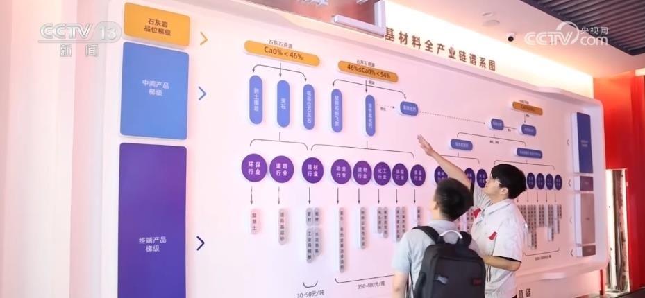 在企業(yè)展廳里,工作人員把記者引向一張產(chǎn)業(yè)鏈譜系圖。最基礎的石灰石,既可以是水泥的生產(chǎn)原料,還可以根據(jù)石頭的鈣含量和加工深度,延伸出氧化鈣、碳酸鈣、納米鈣等各種各樣的下游產(chǎn)品,用于食品、醫(yī)藥、電子等領域。產(chǎn)品鏈條每往下延伸一步,價格就要翻上幾倍。