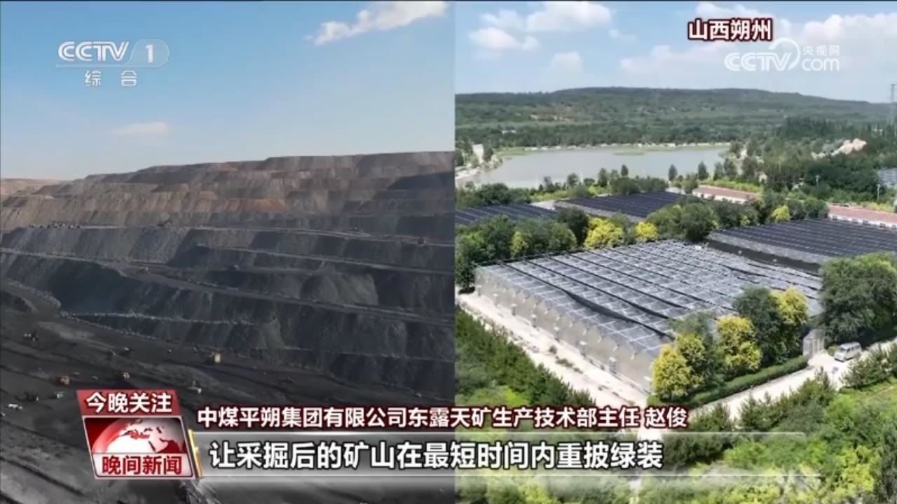 盛夏時節(jié),走進山西平朔礦區(qū),通過把復墾土地與光伏發(fā)電結(jié)合起來,“架上發(fā)電、架下牧草”的生態(tài)美景重現(xiàn)。萬畝林地、草地與藍色“光伏海洋”交相輝映。