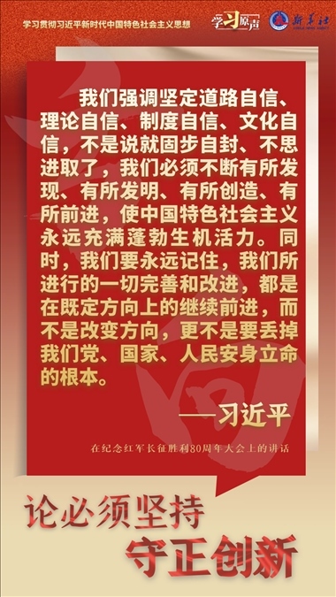 我們從事的是前無(wú)古人的偉大事業(yè),守正才能不迷失方向、不犯顛覆性錯(cuò)誤,創(chuàng)新才能把握時(shí)代、引領(lǐng)時(shí)代。我們要以科學(xué)的態(tài)度對(duì)待科學(xué)、以真理的精神追求真理,堅(jiān)持馬克思主義基本原理不動(dòng)搖,堅(jiān)持黨的全面領(lǐng)導(dǎo)不動(dòng)搖,堅(jiān)持中國(guó)特色社會(huì)主義不動(dòng)搖,緊跟時(shí)代步伐,順應(yīng)實(shí)踐發(fā)展,以滿腔熱忱對(duì)待一切新生事物,不斷拓展認(rèn)識(shí)的廣度和深度,敢于說(shuō)前人沒(méi)有說(shuō)過(guò)的新話,敢于干前人沒(méi)有干過(guò)的事情,以新的理論指導(dǎo)新的實(shí)踐。