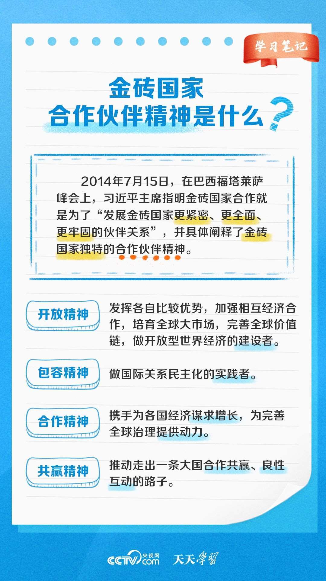 自金磚國(guó)家合作機(jī)制建立以來,金磚國(guó)家合作不斷走深走實(shí),成為帶動(dòng)世界經(jīng)濟(jì)增長(zhǎng)、完善全球經(jīng)濟(jì)治理、推動(dòng)國(guó)際關(guān)系民主化的重要力量之一?!短焯鞂W(xué)習(xí)》特推出《學(xué)習(xí)筆記》,與您一起了解金磚國(guó)家合作機(jī)制緣何擁有強(qiáng)勁生命力。