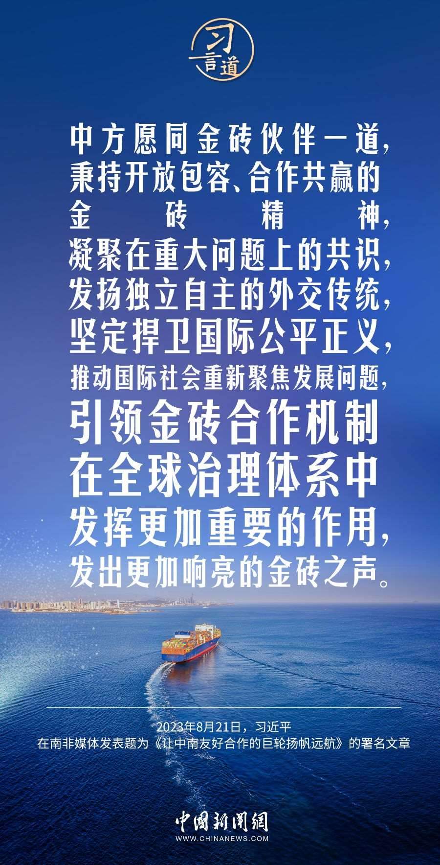8月21日,在赴約翰內(nèi)斯堡出席金磚國家領(lǐng)導(dǎo)人第十五次會晤并對南非進(jìn)行國事訪問之際,國家主席習(xí)近平在南非《星報》、《開普時報》、《水星報》和南非獨(dú)立媒體網(wǎng)站發(fā)表題為《讓中南友好合作的巨輪揚(yáng)帆遠(yuǎn)航》的署名文章。習(xí)近平指出——