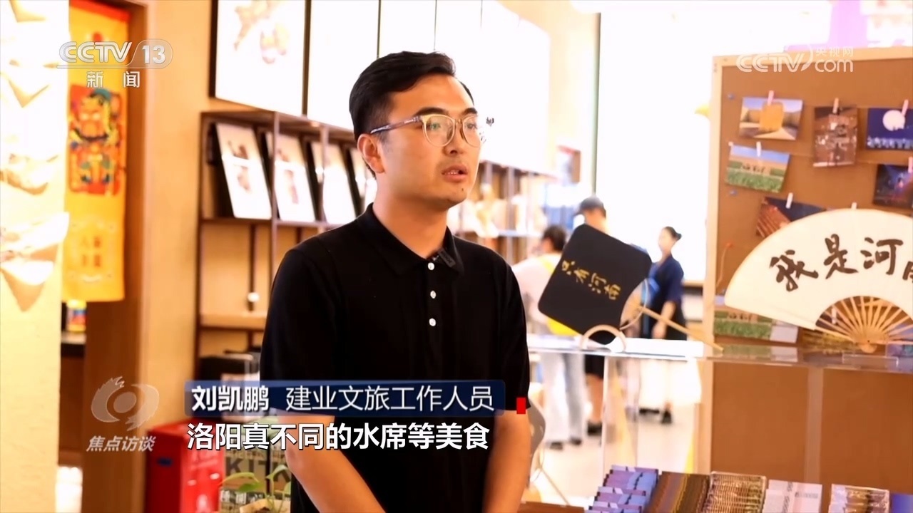 建業(yè)文旅工作人員劉凱鵬:“這個(gè)暑期的省外游客占比已經(jīng)超過(guò)六成,我們也深度挖掘了當(dāng)?shù)匚幕头沁z文化,游客可以通過(guò)拓印一張木板年畫(huà)、手做一副蒲扇,來(lái)感受非遺文化的記憶之美,同時(shí),各種各樣的河南特色小吃、洛陽(yáng)真不同的水席等美食,讓游客除了戲劇以外,全方位沉浸在河南文化的熏陶當(dāng)中?!?/p>