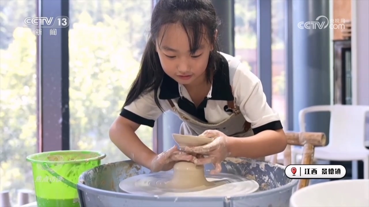 在景德鎮(zhèn)的一家陶瓷工坊,老師正在認(rèn)真講解制作技藝。不過(guò),看起來(lái)容易做起來(lái)難,大公雞到了自己手里就捏成了個(gè)四不像。還是小朋友厲害,小茶碗捏得有模有樣。周曉雷來(lái)自湖北武漢,這個(gè)暑假她特意帶孩子來(lái)景德鎮(zhèn)住一周,想讓孩子了解和體驗(yàn)陶瓷制作這門非遺文化。