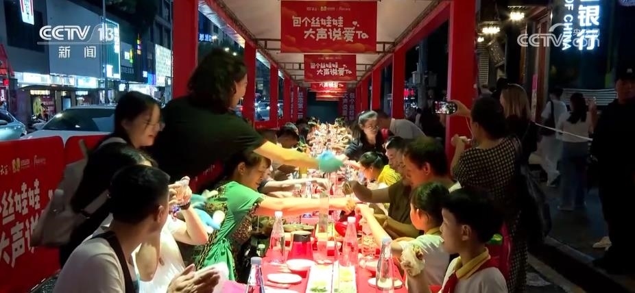 這個(gè)暑期,貴州貴陽(yáng)天氣涼爽,來(lái)這里旅游還可以感受一下貴陽(yáng)云巖區(qū)的長(zhǎng)街宴。近60米的長(zhǎng)街宴一字排開(kāi),游客圍坐在長(zhǎng)桌邊,品嘗當(dāng)?shù)氐姆沁z美食“絲娃娃”。這是一種貴陽(yáng)傳統(tǒng)小吃,別名素春卷,已有百年歷史。