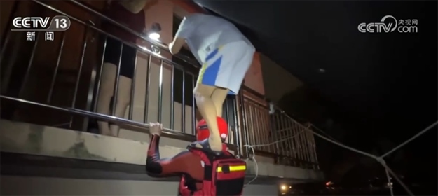在楓亭鎮(zhèn)滄溪村,莆田森林消防人員借助橡皮艇挨家挨戶(hù)搜尋被困人員。由于村內(nèi)積水嚴(yán)重,部分民房的一樓已被洪水淹沒(méi),很多村民不得不轉(zhuǎn)移至二層等待救援。在一處居民房,救援人員拉起安全繩,幫助村民順繩轉(zhuǎn)移至橡皮艇。