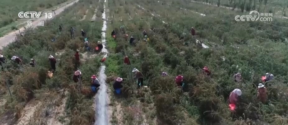 央視網(wǎng)消息:枸杞是我國(guó)西北地區(qū)重要的經(jīng)濟(jì)作物之一。青海是我國(guó)最大的枸杞種植區(qū),種植面積約50萬(wàn)畝。初秋時(shí)節(jié),都蘭縣的枸杞正值采摘季,來(lái)自各地的采摘工人在這里忙碌。