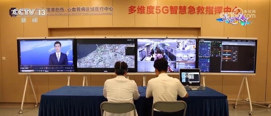 在大型5G移動急救復蘇單元工作時,院內(nèi)的5G急救指揮中心的電子大屏上,能夠?qū)崟r查看急救治療車內(nèi)的情況、患者監(jiān)護生命體征、車輛實時位置等信息,并進行實時的線上指導。