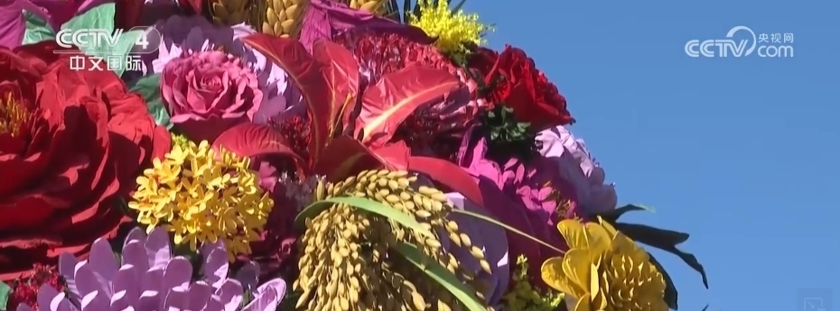 五湖四海的游客來(lái)到天安門(mén)廣場(chǎng)拍照留念,特別是廣場(chǎng)中央喜慶熱烈的巨型花籃,更成為了最熱門(mén)的留影點(diǎn)。2023年,廣場(chǎng)花籃首次裝入象征豐收的五谷元素,體現(xiàn)花團(tuán)錦簇、五谷豐登,表達(dá)了全國(guó)各族人民,在同心共筑中國(guó)夢(mèng)的偉大征途中開(kāi)創(chuàng)更加美好的未來(lái)。