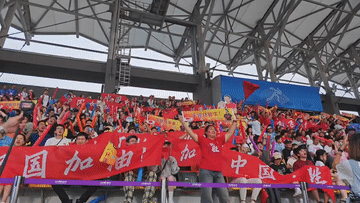 在滿場為中國隊加油的歡呼聲里