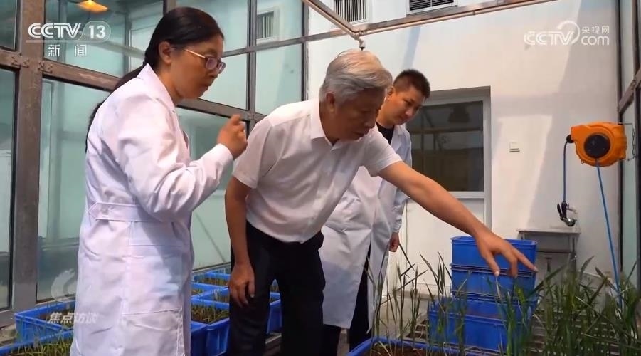 在河南省農業(yè)科學院的玻璃溫室,50株剛剛破土一個月的小麥新品種幼苗長勢不錯。小麥品種的培育者——小麥育種專家許為鋼院士帶著團隊細心地查看這些幼苗。