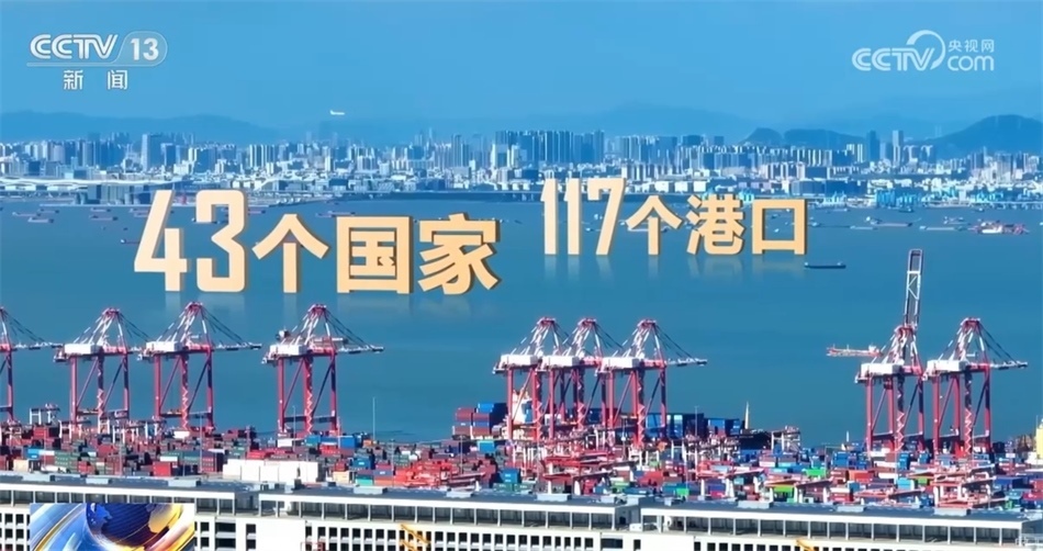 向大海,這是2013年時中國與共建“一帶一路”國家間的水運航線。十年間,共建“一帶一路”國家間的水運航線數(shù)量翻了一番,新增航線達(dá)到了1344條,穿梭其中的貨船增加150%?!敖z路海運”航線已通達(dá)全球43個國家的117個港口,織出了一張聯(lián)通世界的貿(mào)易流動網(wǎng)絡(luò)。