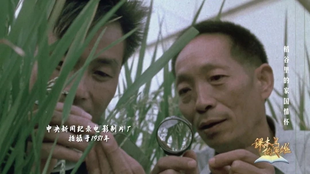 袁隆平在稻田里查看時(shí)