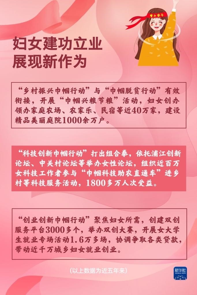 黨的十八大以來,黨對婦女兒童工作的領(lǐng)導(dǎo)全面加強(qiáng),婦女參與經(jīng)濟(jì)發(fā)展的舞臺更為廣闊,參與決策和管理更加廣泛深入,享有更加優(yōu)質(zhì)更加多元的教育……新時(shí)代我國婦女事業(yè)取得了歷史性成就,發(fā)生歷史性變革。