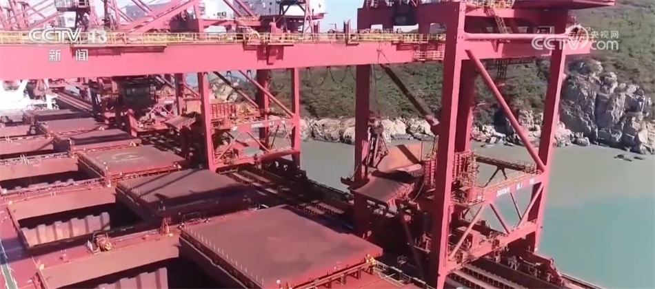 記者來到寧波舟山港鼠浪湖礦石中轉(zhuǎn)碼頭時,一個個抓斗正忙著從巨輪上接卸礦石。今年以來,40萬噸礦船是這里的???。作為大宗物資集散地,寧波舟山港承擔(dān)了長江經(jīng)濟帶45%的鐵礦石、90%以上的油品中轉(zhuǎn)量。前三季度,寧波舟山港經(jīng)營體系內(nèi)鐵礦石的接卸量超過了1億噸。