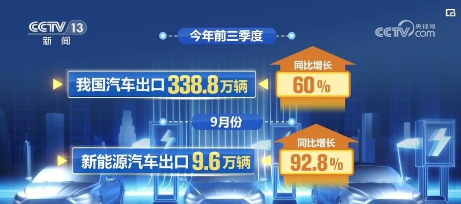 今年前三季度,我國汽車出口338.8萬輛,同比增長60%。這其中,新能源汽車的出口增幅十分強(qiáng)勁。其中9月份,新能源汽車出口9.6萬輛,同比增長92.8%。在不少國家,中國的新能源汽車已經(jīng)成為當(dāng)?shù)匦履茉雌囦N量的總冠軍。分析背后的原因,“固本興新”是關(guān)鍵詞,新能源汽車正為中國外貿(mào)注入新的動能。據(jù)中國汽車工業(yè)協(xié)會的預(yù)計,2023年汽車出口將超過400萬輛,其中新能源汽車將超過100萬輛。