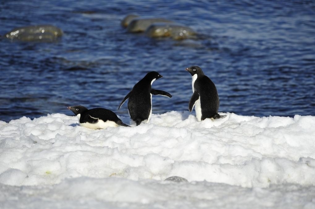 在羅斯海恩克斯堡島生活的阿德利企鵝。新華社記者 張建松 攝