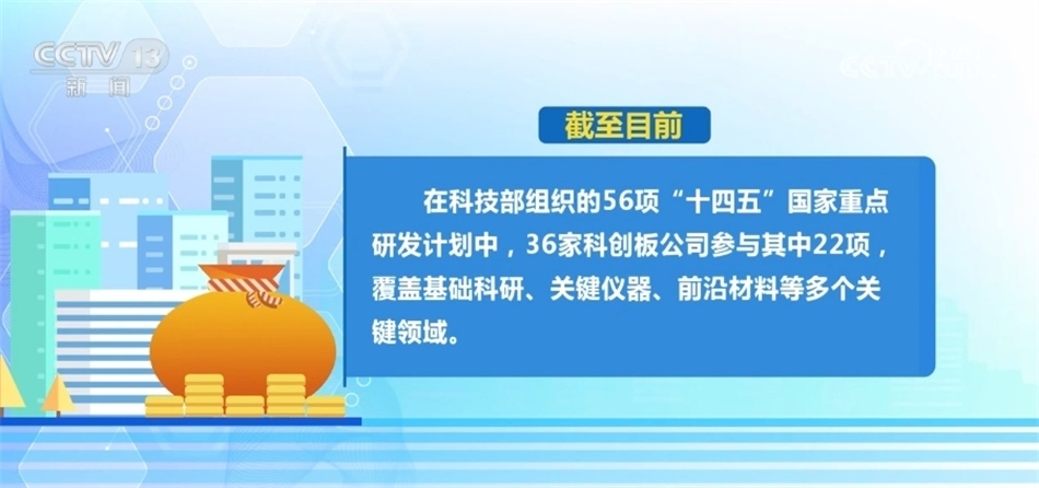 ?????? 截至目前,在科技部組織的56項(xiàng)“十四五”國家重點(diǎn)研發(fā)計劃中,36家科創(chuàng)板公司參與了其中22項(xiàng),覆蓋了基礎(chǔ)科研、關(guān)鍵儀器、前沿材料等多個關(guān)鍵領(lǐng)域。
