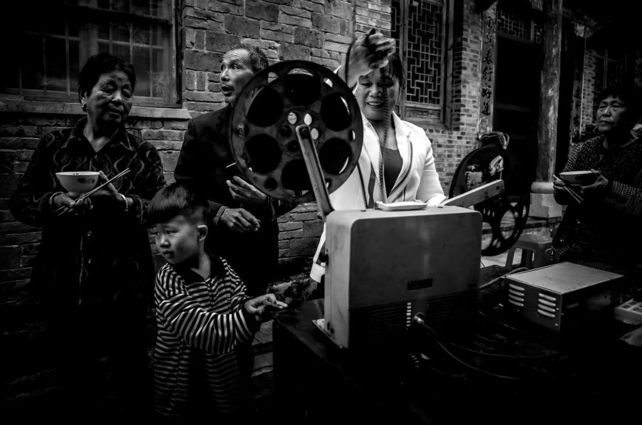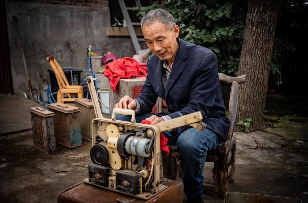 1983年,鄉(xiāng)里成立了電影放映隊,曹毅成了隊長,還參加了電影培訓(xùn)班,扎扎實實地學(xué)了放映技術(shù)、電工等好多課程,成了專業(yè)的放映員。那時片源少,一張片子各個鄉(xiāng)排期輪流放映,讓曹毅最開心的事,就是坐上幾個小時的公交車去縣里拿膠片。有時揣著膠片回來的路上就忍不住想樂,哪回放新電影都像打仗一樣,人山人海,得防著別碰壞了放映機,還得留心會有哪個村連夜來搶放映機。“總有一萬人,銀幕前后都是人,背面都有人看。在稻田里面把那稻子割完了以后,電影就在稻場里面放,不然地方不夠大。”空氣中飄著稻谷的香味,不少人會盤腿坐在地上,扎扎實實看完一部電影。