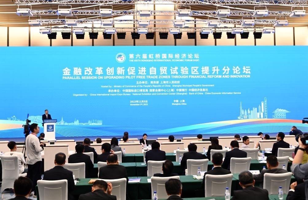 ?11月5日,第六屆虹橋國際經(jīng)濟(jì)論壇“金融改革創(chuàng)新促進(jìn)自貿(mào)試驗(yàn)區(qū)提升”分論壇在上海舉行。新華社記者 金良快 攝