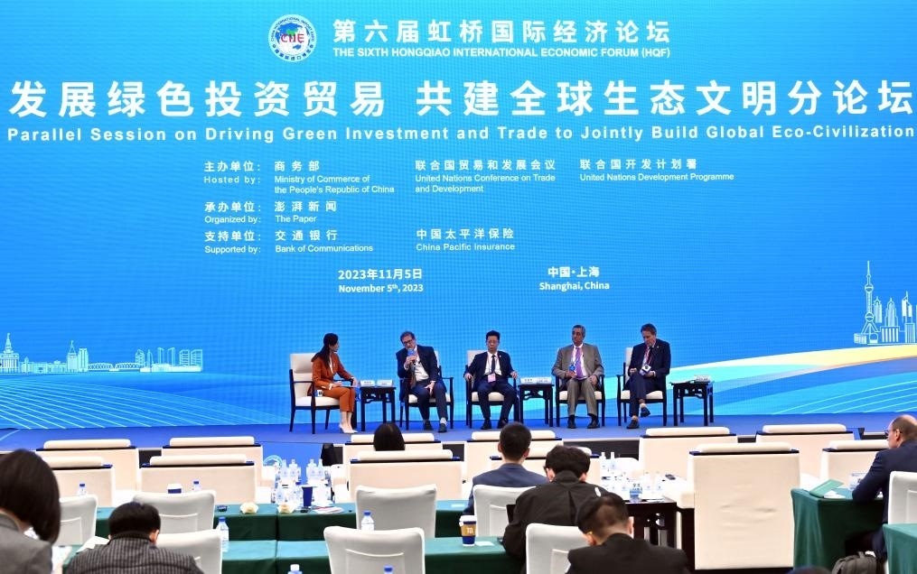 ?11月5日,第六屆虹橋國際經(jīng)濟(jì)論壇“發(fā)展綠色投資貿(mào)易 共建全球生態(tài)文明”分論壇在上海舉行。新華社記者 金良快 攝