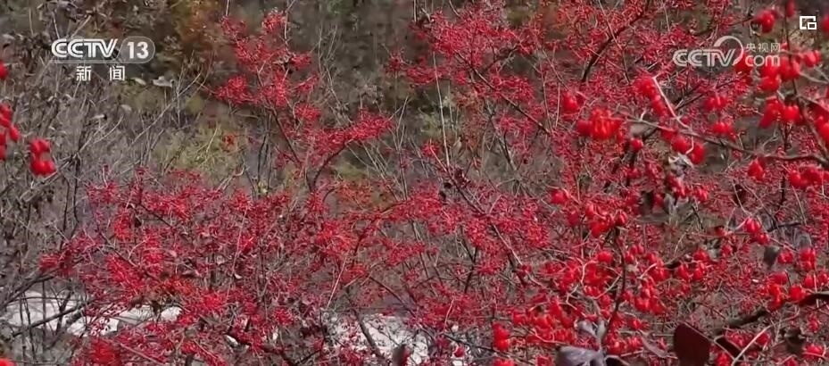山林間,成片的山茱萸樹在褪去枯葉后,紅彤彤的果實(shí)便顯露出來,密密麻麻綴滿枝頭。種植戶們穿梭林間,忙著采摘。