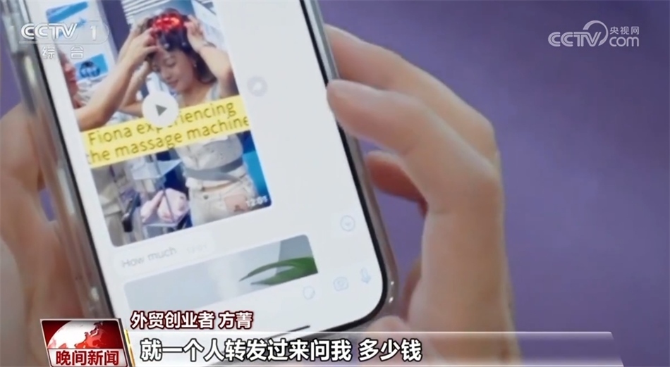 外貿(mào)創(chuàng)業(yè)者 方菁:剛剛?cè)昼娋桶亚f老師給我拍的視頻剪出來(lái)了,現(xiàn)在往我們?nèi)豪锶グl(fā)一發(fā)。你看現(xiàn)在,我還什么都沒有說(shuō),就一個(gè)人轉(zhuǎn)發(fā)過(guò)來(lái)問我,多少錢。