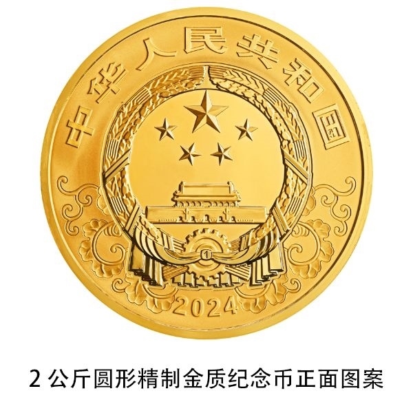 2公斤圓形金質紀念幣為精制幣,含純金2公斤,直徑110毫米,面額20000元,成色99.9%,最大發(fā)行量50枚。