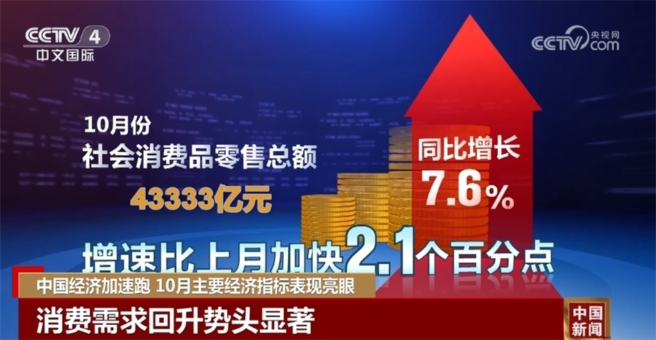 央視網(wǎng)消息:來關(guān)注中國經(jīng)濟10月報。國家統(tǒng)計局昨天(11月15日)發(fā)布了10月份經(jīng)濟主要指標(biāo)。數(shù)據(jù)顯示,隨著宏觀調(diào)控政策持續(xù)發(fā)力顯效,全國生產(chǎn)供給穩(wěn)中有升,市場需求持續(xù)改善,就業(yè)物價總體穩(wěn)定,高質(zhì)量發(fā)展扎實推進,國民經(jīng)濟持續(xù)恢復(fù)向好。