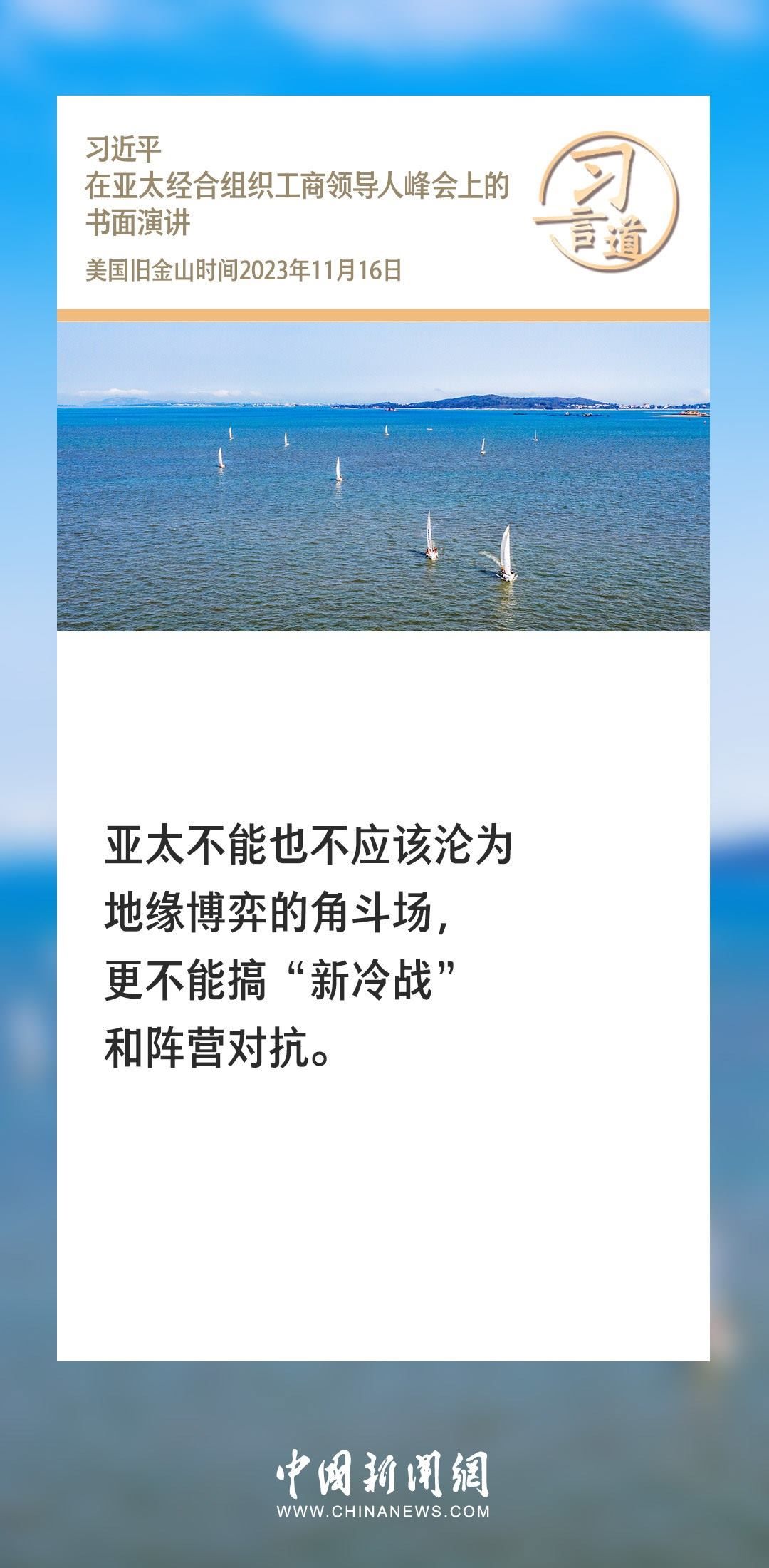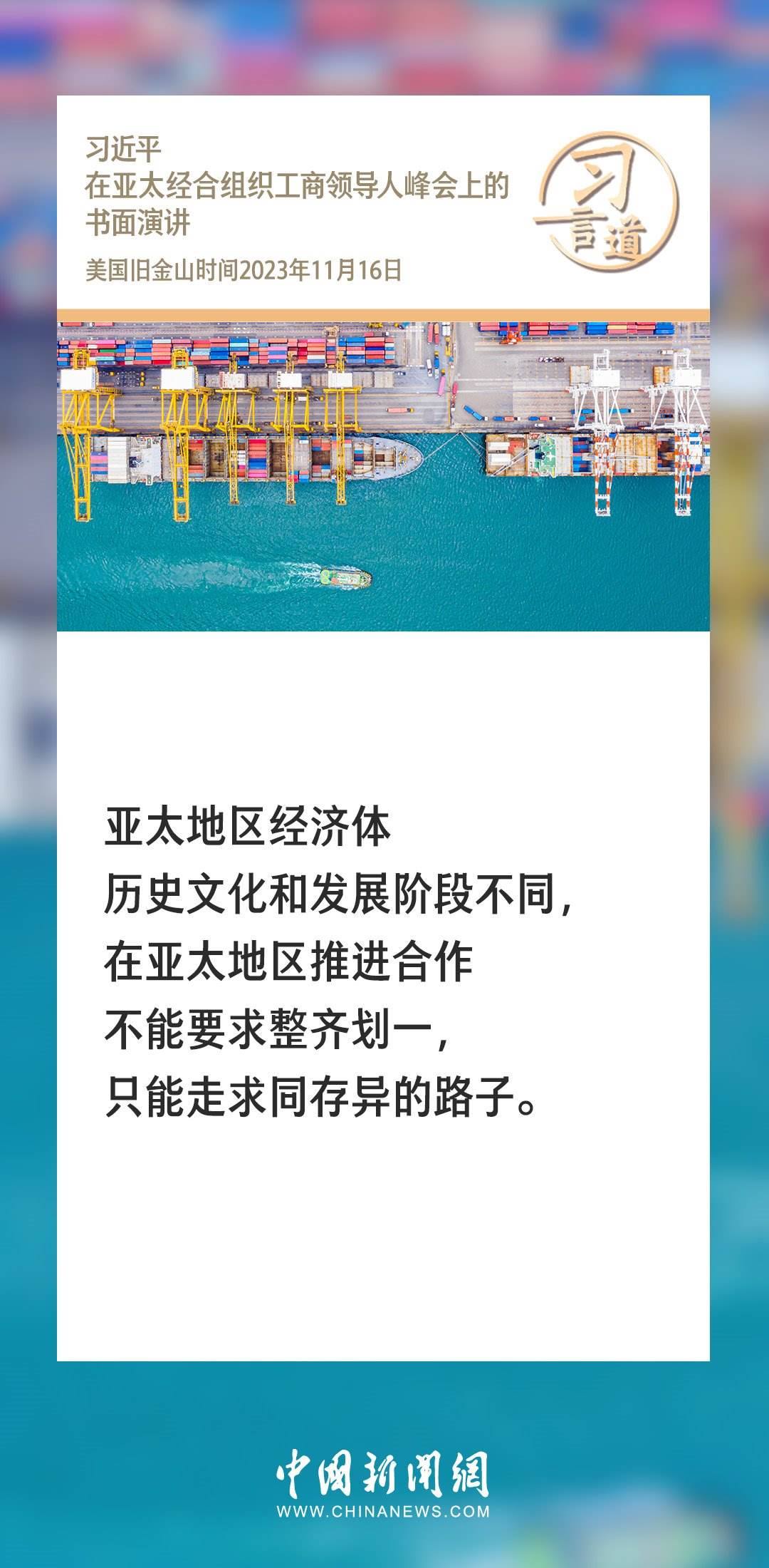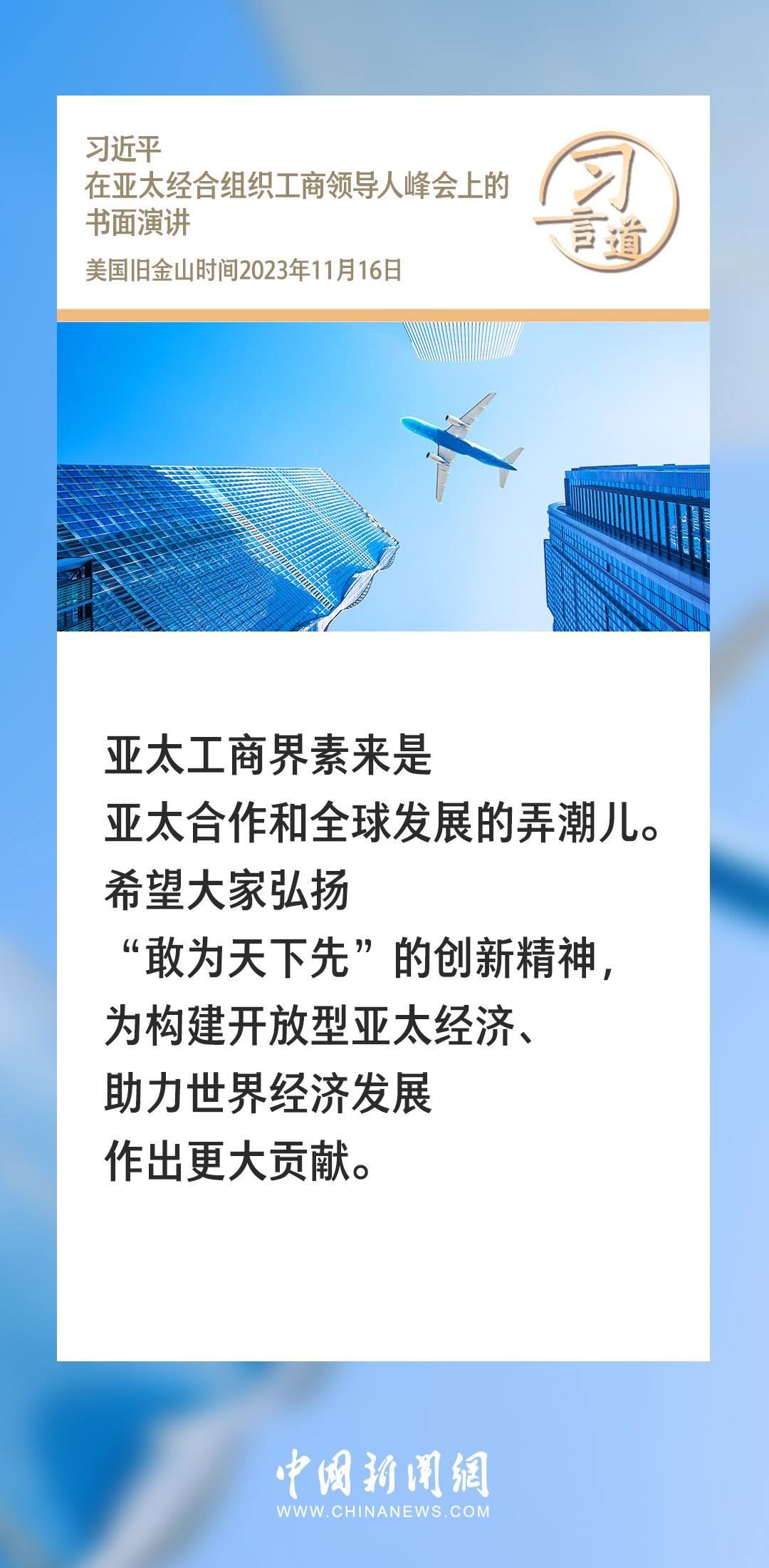 當(dāng)?shù)貢r(shí)間11月16日上午,國(guó)家主席習(xí)近平向在舊金山舉行的亞太經(jīng)合組織工商領(lǐng)導(dǎo)人峰會(huì)發(fā)表題為《同心協(xié)力 共迎挑戰(zhàn) 譜寫亞太合作新篇章》的書面演講。習(xí)近平指出——