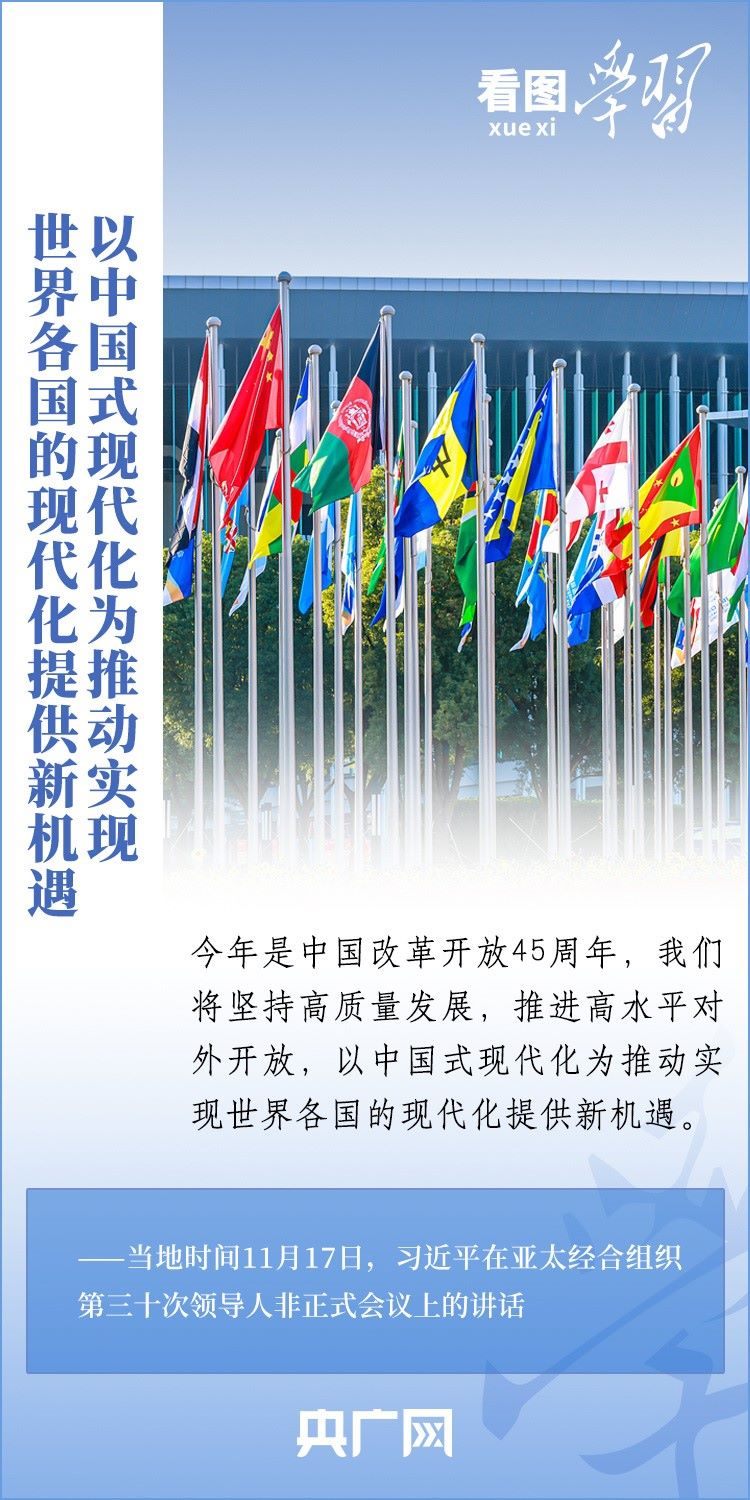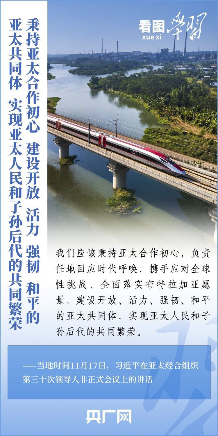 當(dāng)?shù)貢r間11月17日上午,亞太經(jīng)合組織第三十次領(lǐng)導(dǎo)人非正式會議在美國舊金山舉行。國家主席習(xí)近平出席會議并發(fā)表題為《堅守初心 團(tuán)結(jié)合作 攜手共促亞太高質(zhì)量增長》的重要講話。習(xí)主席在講話中全面闡述了中國對深化亞太合作、促進(jìn)地區(qū)和世界經(jīng)濟(jì)增長的重要主張,以“四個堅持”提出多項務(wù)實舉措,希望同各方一道努力,共同打造亞太下一個“黃金三十年”。一起來學(xué)習(xí)!