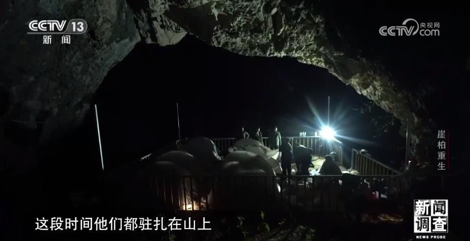調(diào)查用的工具、保險(xiǎn)繩、干糧、帳篷,僅僅是這些必需品,他們的背包就有好幾十斤重。無(wú)人區(qū)里沒(méi)有路,沿途基本都是密集的樹(shù)林和雜草,隊(duì)員們只能用砍刀開(kāi)路。有些崖壁是直接懸空的,根本沒(méi)有著力點(diǎn)。隊(duì)員們就從山林里找來(lái)廢棄的木頭,用鐵絲捆在一起,搭成木橋和圍欄。走了四個(gè)多小時(shí),他們終于在一處懸崖發(fā)現(xiàn)了野生崖柏。他們手中的儀器叫做定位器,可以精確記錄崖柏生長(zhǎng)地點(diǎn)的經(jīng)緯度和海拔,給科研提供更精確的信息。