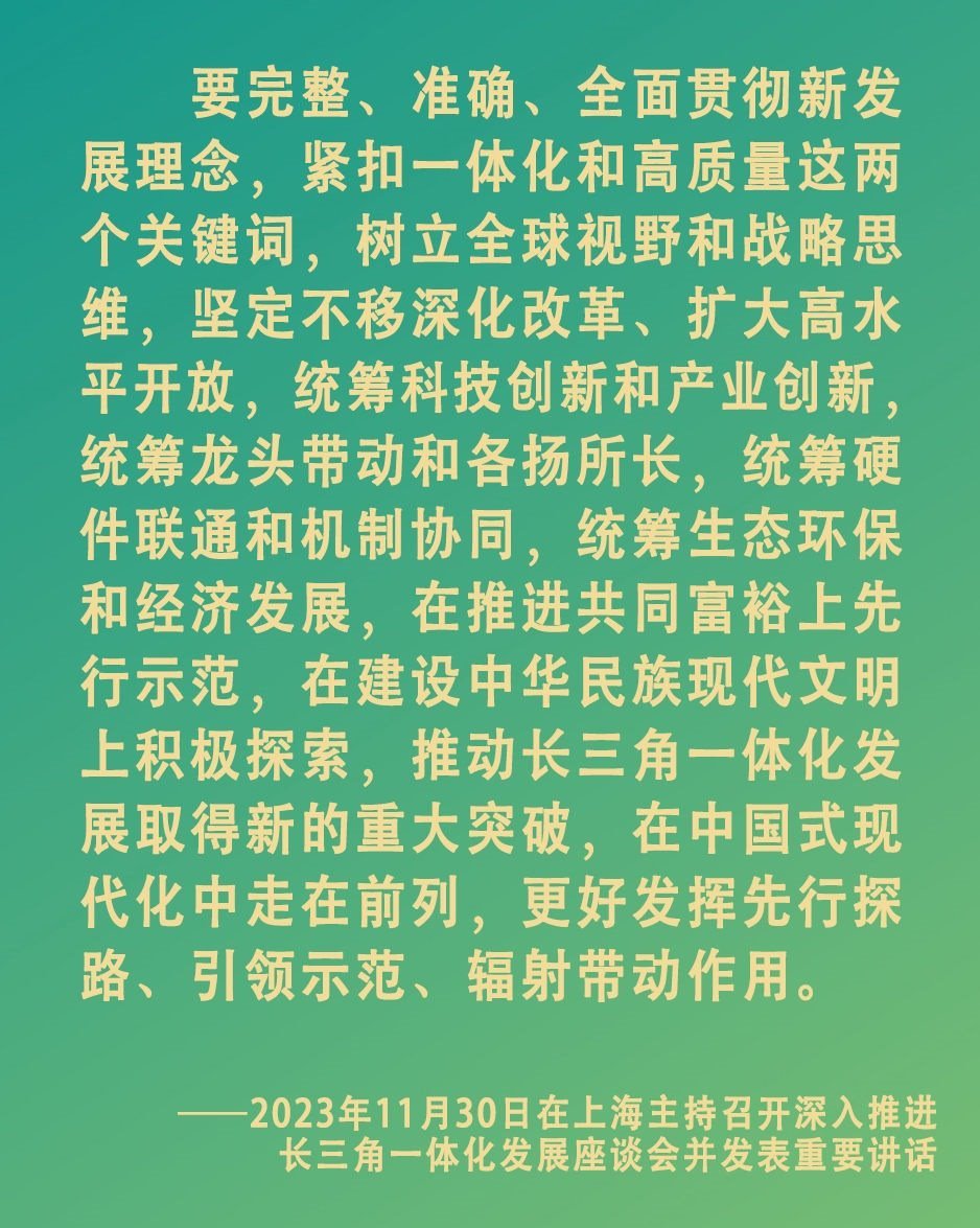 從基礎(chǔ)設(shè)施到公共服務(wù),從產(chǎn)業(yè)集群到創(chuàng)新協(xié)同。長三角三省一市緊扣總書記強(qiáng)調(diào)的“一體化”和“高質(zhì)量”兩個(gè)關(guān)鍵詞,既謀劃長遠(yuǎn),又干在當(dāng)下,一體化發(fā)展的動力澎湃激蕩,百舸爭流的局面加速形成。