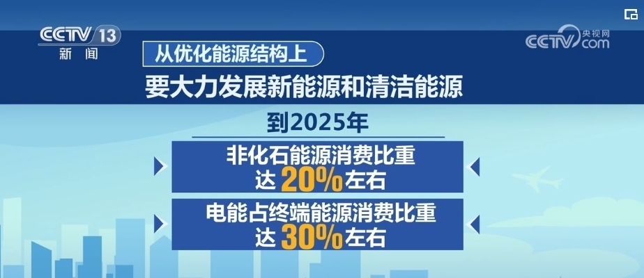 從優(yōu)化能源結(jié)構(gòu)上,要大力發(fā)展新能源和清潔能源。到2025年,非化石能源消費比重達20%左右,電能占終端能源消費比重達30%左右。持續(xù)增加天然氣生產(chǎn)供應(yīng),新增天然氣優(yōu)先保障居民生活和清潔取暖需求。
