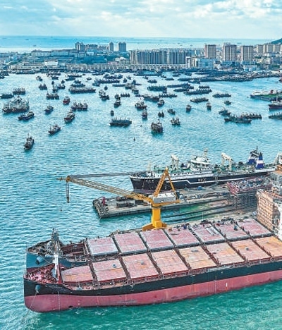 航運業(yè)加快邁向全球領先,造船業(yè)不斷向海圖強。前10月,我國造船完工量、新接訂單量和手持訂單量分別占世界市場份額的49.7%、67%和54.4%。我國造船業(yè)已集齊航空母艦、大型液化天然氣運輸船、大型郵輪“三顆明珠”,正從造船大國闊步邁向造船強國。