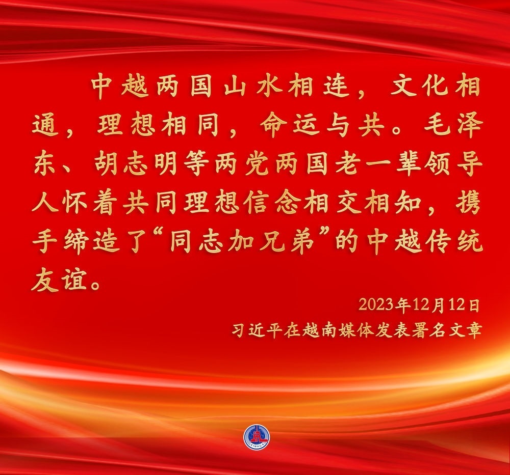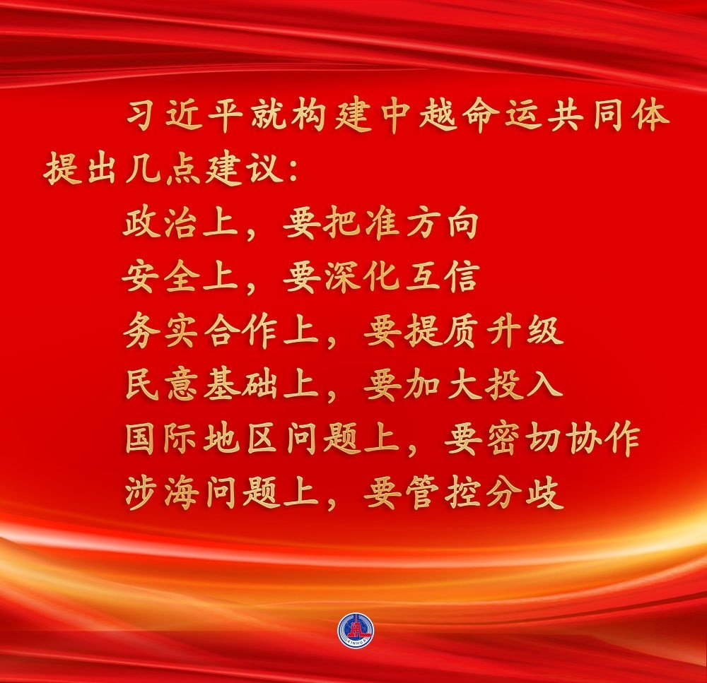 兩位總書記都認為,中越作為友好近鄰,理想相同,理念相通。作為好鄰居、好伙伴、好兄弟、好同志,中越構建具有戰(zhàn)略意義的命運共同體具有天時、地利、人和的獨特優(yōu)勢。雙方應該繼承老一輩領導人締結的傳統(tǒng)友誼,共同努力構建命運共同體,走好各自的現(xiàn)代化道路,實現(xiàn)互利共贏、美美與共,造福兩國人民,也為地區(qū)和平與繁榮作出積極貢獻。