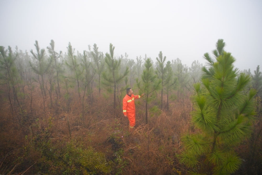 12月12日,護(hù)林員在河南省南陽(yáng)市淅川縣馬蹬鎮(zhèn)葛家溝國(guó)儲(chǔ)林基地巡護(hù)。新華社記者郝源 攝