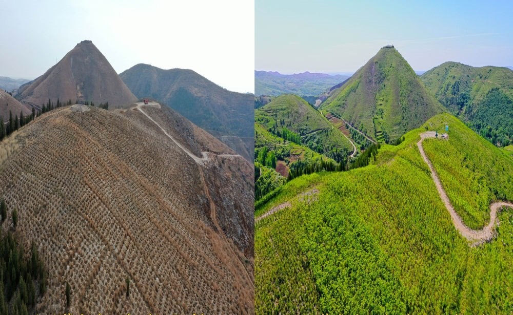 葛家溝國(guó)儲(chǔ)林基地(2020-2022)前后對(duì)比圖(資料照片)。(淅川縣委宣傳部供圖)